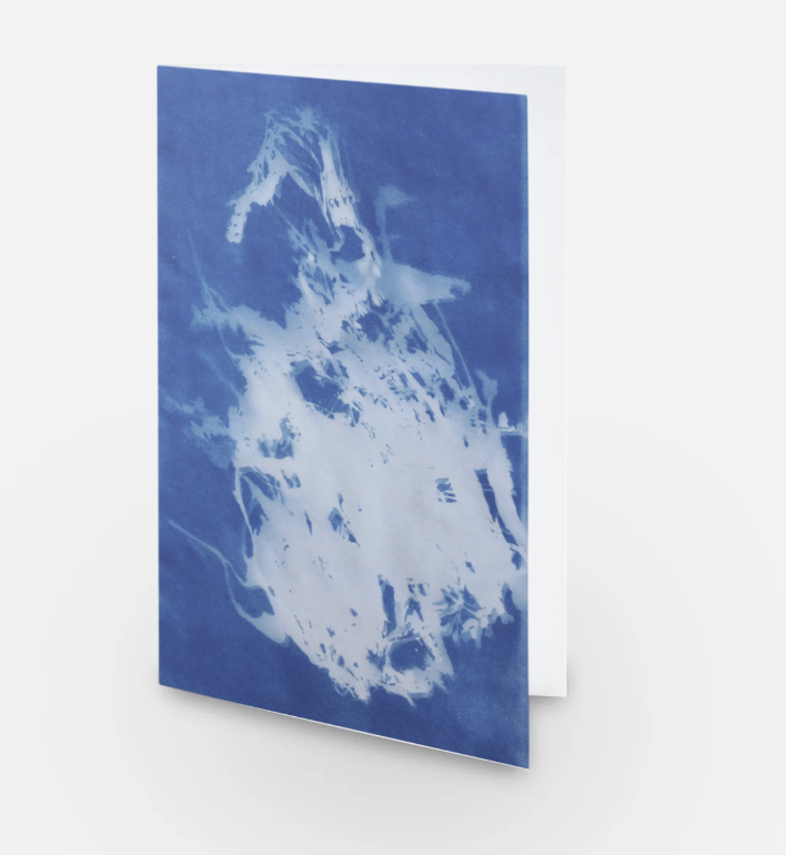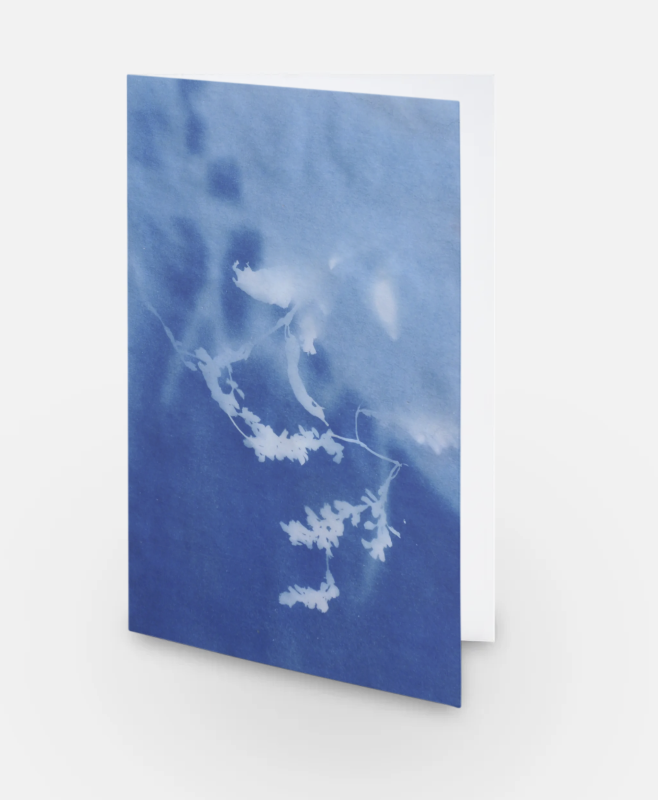 The printed artwork on this blank card is part of my series Time, Space & Blues. The six images, from the first blueprint edition of Time, Space & Blues, document eight months of the growing cycle of an annual plant, Japanese indigo (Polygonum tinctorium), from seed to seed collection. The plants were grown in my small backyard in Brooklyn from April to August, harvested between August and September, and the seeds were collected in late October 2018.